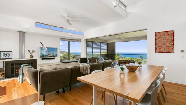 Seaview is a stunning holiday place within a short, easy walk to the beach and local cafés. The kitchen and dining area provide a wonderful space to share meals made with fresh produce from the Noosa Farmers Markets. The heated pool is perfect for a swim even in the cooler winter months, and the cosy fireplace made for a lovely spot to relax on cooler nights while listening to the soothing sounds of the ocean.