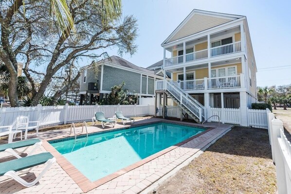 Welcome to Joye-Phil Times, located in North Surfside, just a mile north of the Surfside Beach Pier. This spacious home features six bedrooms and 6.5 bathrooms, perfect for gatherings. Enjoy a private pool, with seasonal heating available upon request for an additional fee, and convenient enclosed hot and cold exterior showers. With two living areas, one on each floor and two parking bays, this 3,600+ square foot retreat offers plenty of room to relax and enjoy time together. Experience the ultimate beach getaway at Joye-Phil Times!