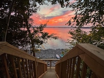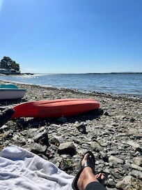 Great little camp on the water. Well equipped ( you don’t need to bring anything but your clothing!) and clean. Nice patio off the living room that overlooks the water. It has outdoor dining, grill and fire pit. The camp is on a ledge and the stairs to the beach are steep. Not for anyone who has mobility issues and wants access to the water. Everyone else will have a great time. Kayaks, beach loungers, and a fire pit await on the beach.
