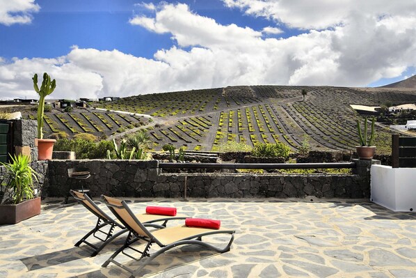 Enjoy the furnished terrace with stunning views of the vineyards and volcanic landscapes, perfect for sunbathing, reading, or enjoying an outdoor meal while immersing yourself in the tranquillity of the surroundings.