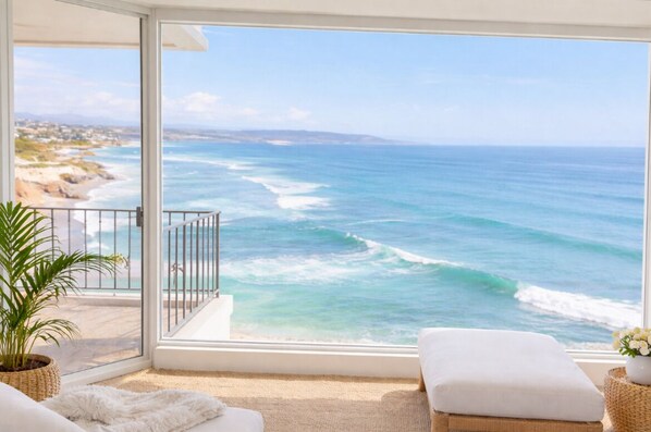 Literally a WALL OF GLASS across the entire living room and master bedroom, & balconies on BOTH sides for SPECTACULAR sunrises and sunsets overlooking the surf!