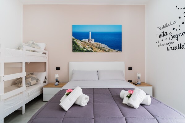 Located in Tuglie, the Room Luxury 12 - Aurora with step-free access and interior has everything you need for a relaxing holiday. The 18 m² property consists of 1 bedroom and 1 bathroom and can therefore accommodate 4 people. Additional amenities include high-speed Wi-Fi (suitable for video calls) as well as a TV. A baby cot is also available.