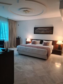 We stayed in a junior suite as a family of four (2 adults and 2 kids), and overall we had a really pleasant experience. The suite was spacious, with a separate kitchen and sitting area and 2 bedrooms. which made it feel more like an apartment than a hotel room. The beds were very comfortable with good quality mattresses – we all slept really well.