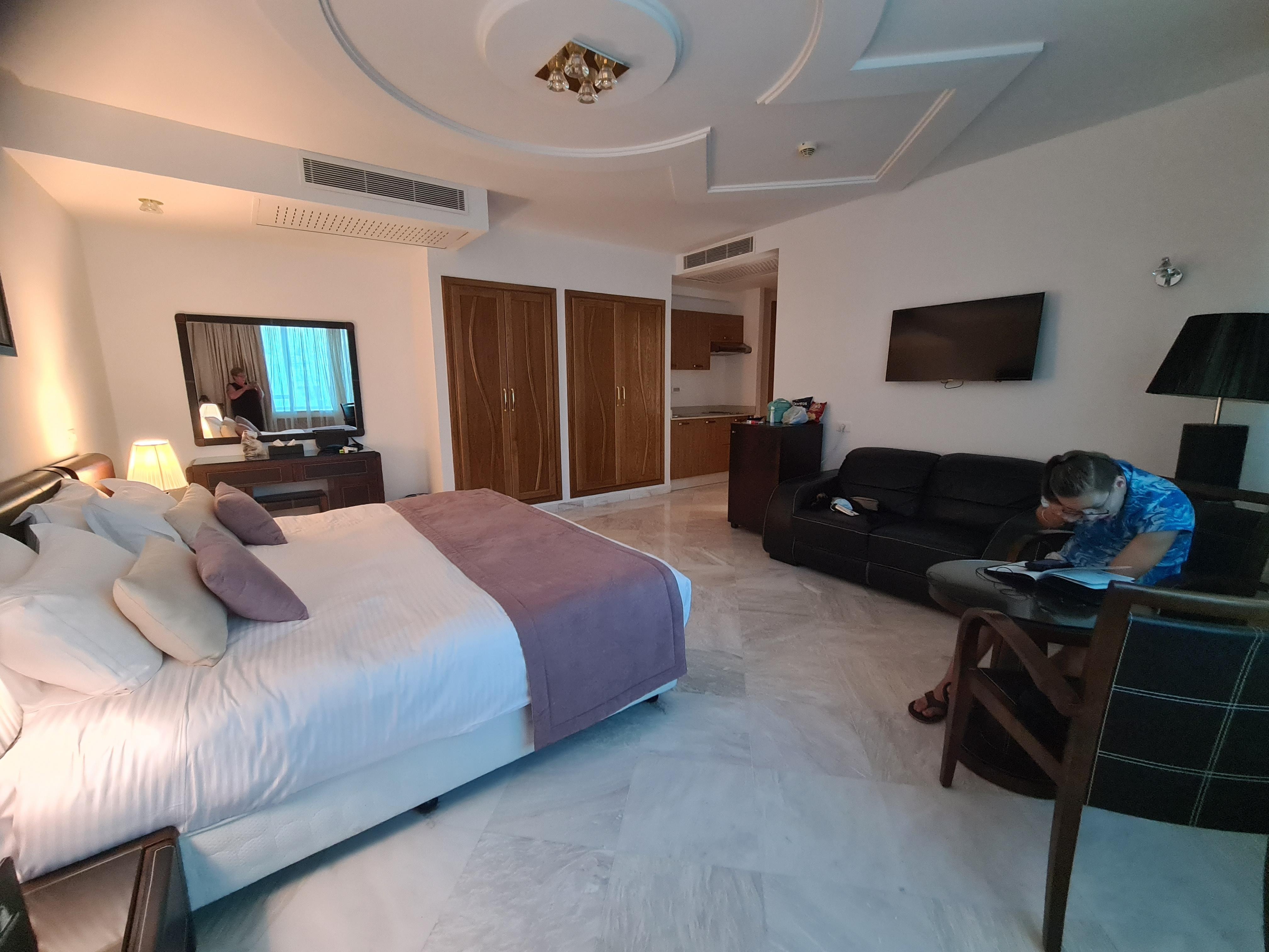 Breakfast was varied and tasty, with a nice mix of (warm) Tunisian dishes, salads, yogurt, eggs, and croissants. But what really stood out was the friendliness of the staff – everyone was incredibly welcoming and helpful throughout our stay.