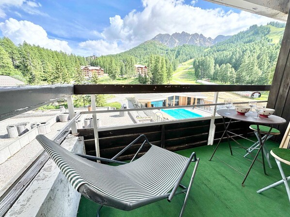 50m from ski slopes, 3rd floor, balcony, fireplace or stove, tv, ski locker, 40m², Vars