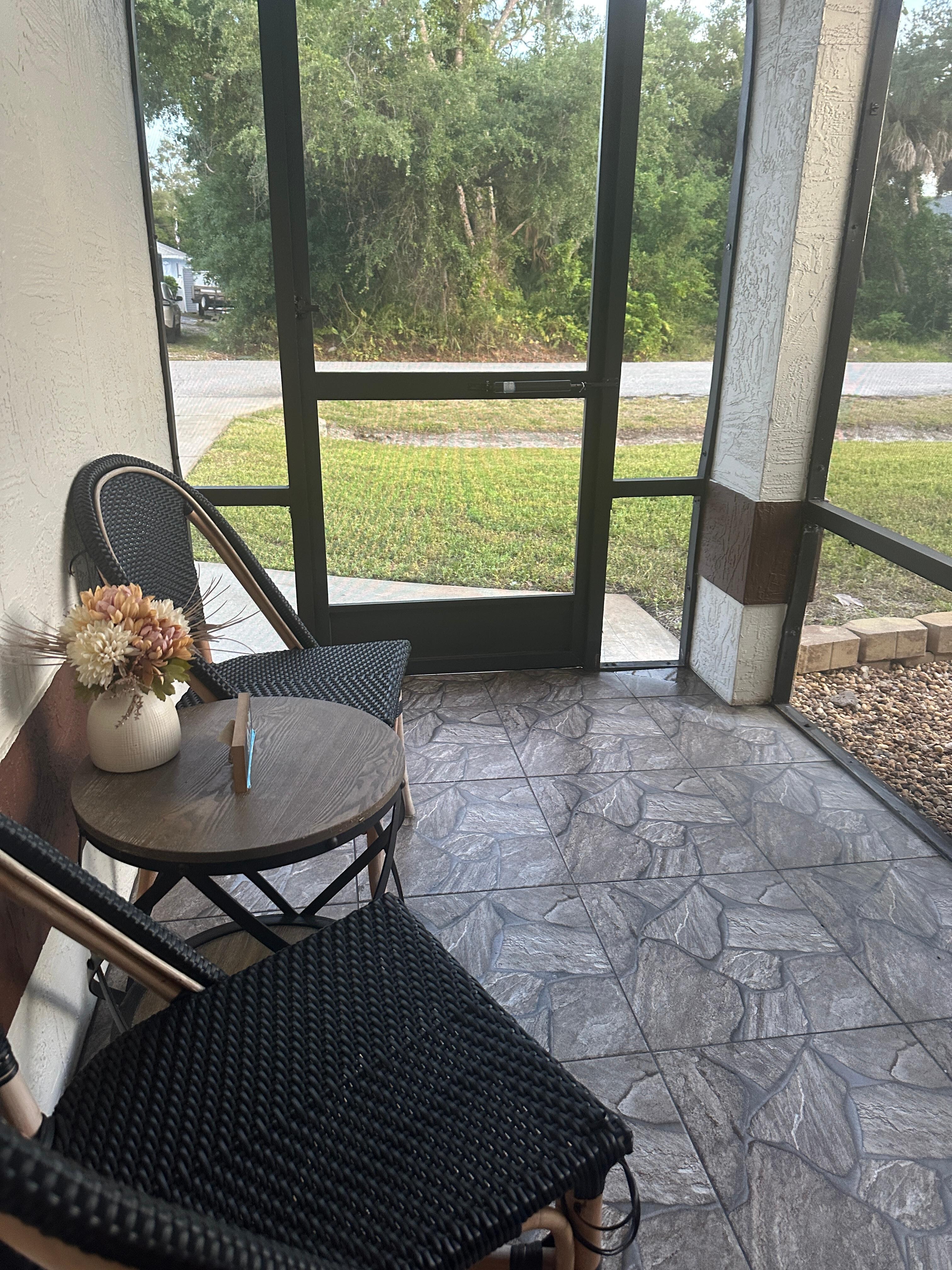 The custom made heated pool is inviting you for a splash as soon as you open the door. The pool deck has been remodeled in May 2018 with brand new thin pavers. The pool enclosure also provides you a BBQ grill and a patio table and chairs, and also two inviting "chaise lounge" chairs.