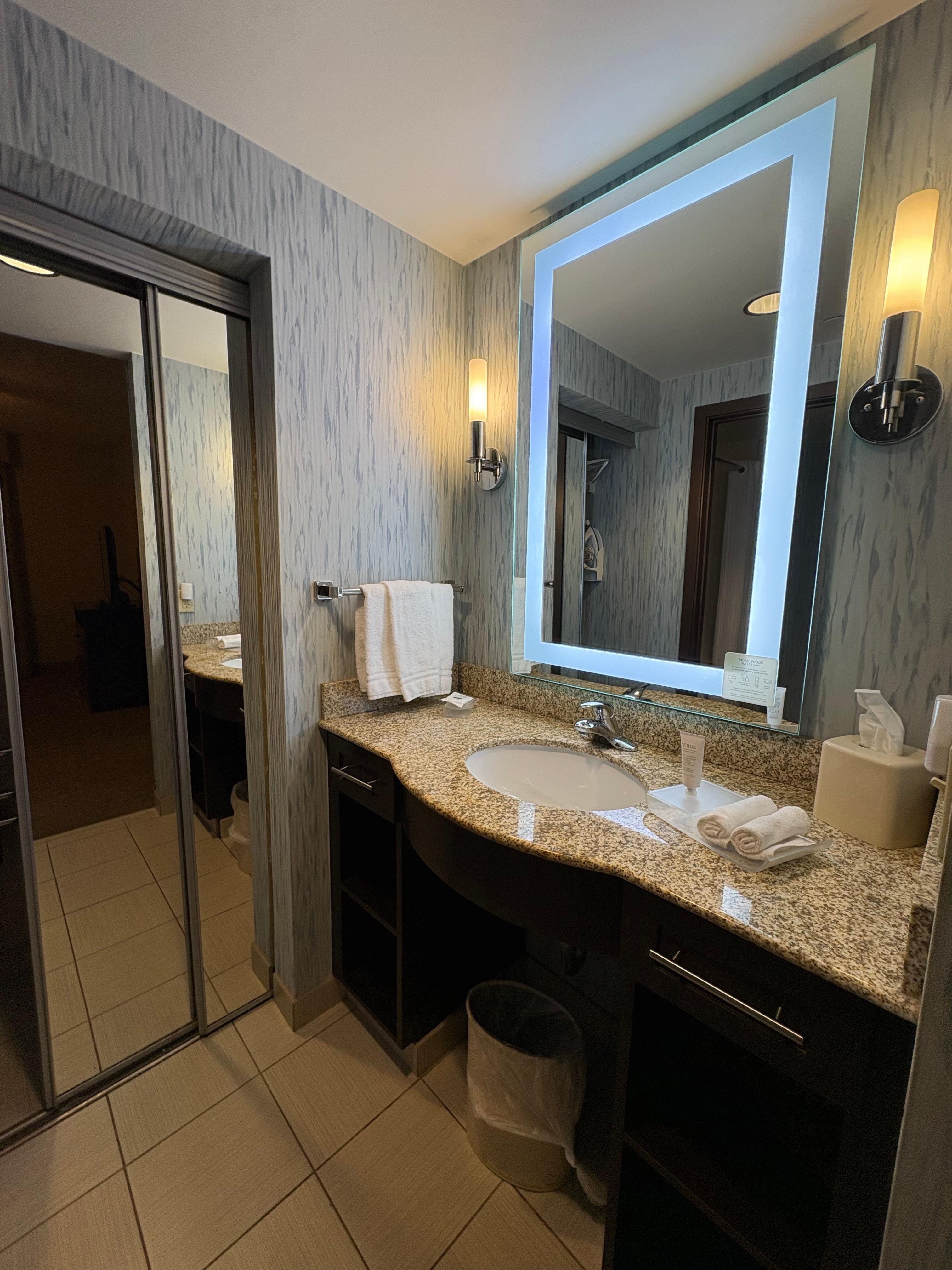 Our stay was excellent. The room had all that we needed. It was quiet and comfortable. Our housekeeper, Carmen, did a wonderful job. She got us a few extras that we requested. The breakfast was very good, with interesting Mexican themed choices. The breakfast staff were very friendly as well. We requested late check-out, and it was absolutely fine with the front desk staff. I would definitely recommend this Homewood Suites!
