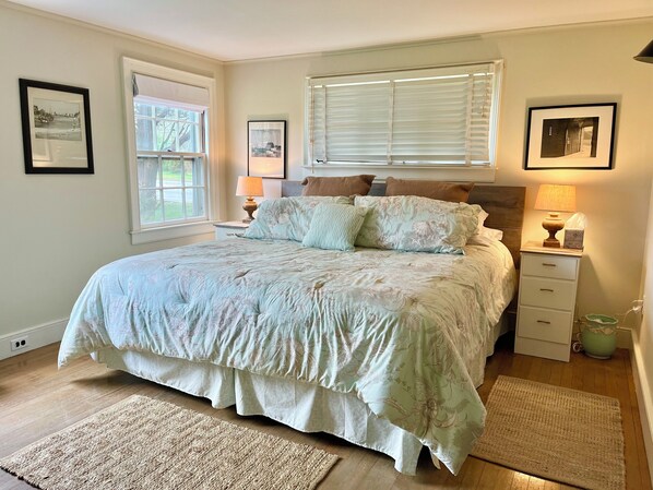 The home features central air conditioning. Take care in booking as many MVY homes have no air conditioning. Our central air conditioning is supplemented by units in the upstairs bedrooms to keep the whole house cool and dry. Two King size beds! You won't find that in many MVY homes, and definitely not in homes at this price point. Almost all living spaces have hardwood floors or tile, stylish, clean, and hypoallergenic. This is a personal family home. We ask you to be respectful of the home and not move furniture, items or photos.