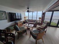 Cet appartement condo de Waialua offre l'accès gratuit à Internet par Wi-Fi. Des bureaux et des chaises de bureau sont fournis.