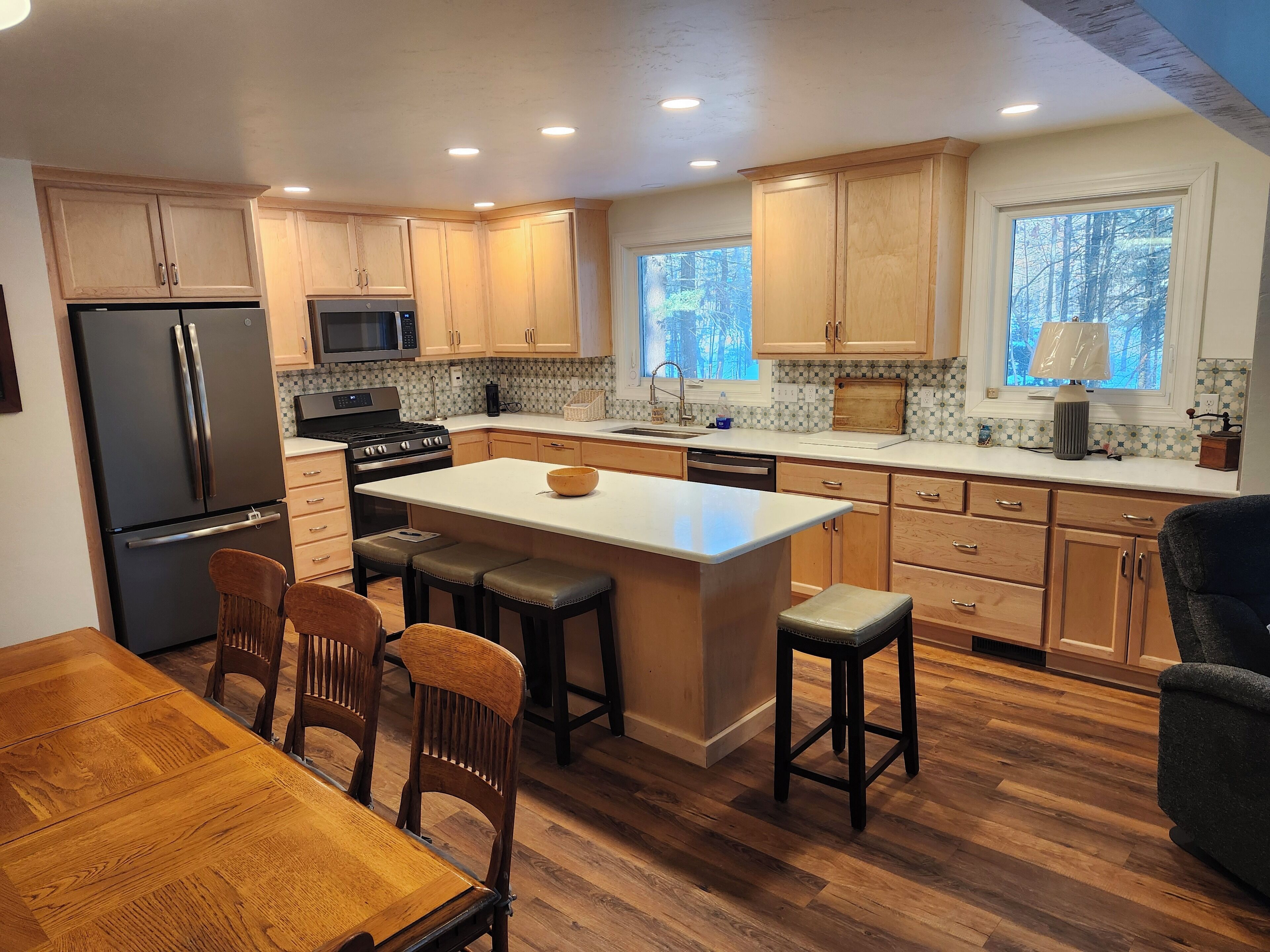 Great property overall. But please please please put a door on the master bathroom!! Besides the lack of privacy, an annoying bright blue light in the shower was flashing every night, all night long (?bluetooth speaker?) and this was easily visible from bed and disruptive to sleep. No instructions on use of the Bluetooth shower speakers or Sonos speaker in kitchen. One set of supplies available…so bring extras of your own if you’re staying more than a couple days. Garbage day was in the middle of our trip, but not a single extra garbage bag was available. Ran out of paper towels, no extra rolls available. Soap dispenser in master bath didn’t pump, and no other back up options available either.