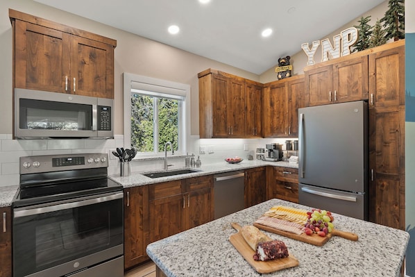 Designed to be both functional and welcoming, the cozy kitchen goes far beyond the basics. It includes all the appliances and equipment you’d expect from a well-lived-in home (and some you wouldn’t).