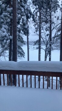 The cottage on lost lake is cozy, serene, clean, and has all of the amenities of home, but away from the mad rush. Sitting on the deck and enjoying the 100 ft. Pines and taking in the lake view is the perfect escape from it all. The cottage is on a private road. It is accessible all year round. When you enter the cottage you are welcome by a large kitchen/ dining area, accompanied by a large living room area, all with tongue and groove vaulted ceiling. The cottage was lovingly built by a couple who live on the same lake. There is an immediate sense of serenity, and space. There are 2 bedrooms in the back. One is a Queen iron wrought bed with lovely oak furniture, many drawers, and large closets. The other has very new and solid full bunk beds with a twin trundle. In the living room, the couch is also a queen-size pull-out bed. There is one bath. It is really 2 rooms. The double sinks, and vanity, and washer and dryer are in a room adjoining the bathtub, shower, and commode. This property also includes a paddle boat, row boat, 2 canoes & 1 kayak.