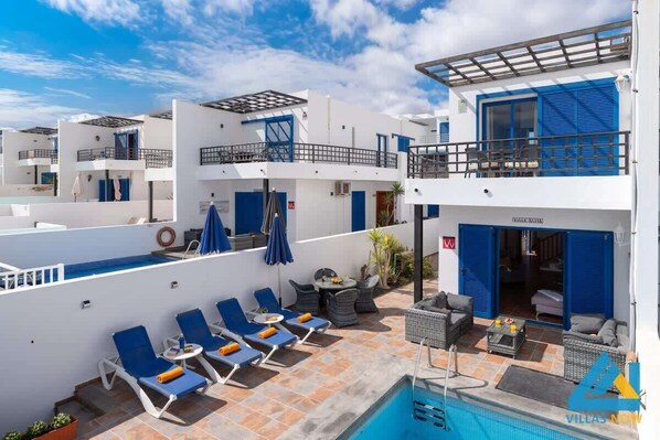 Villa Elise is in the highly acclaimed newly developed area of Playa Rubicon, close to Marina Rubicon. There are 2 bedrooms and 3 bathrooms and the villa has a private heated pool.