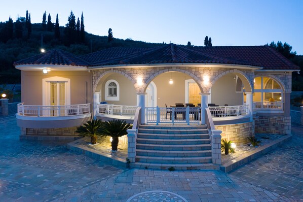 The villa "Chrysoula" in Zakynthos is a great choice for your stay with a mountain view. The 135 m² property consists of a living room, a fully-equipped kitchen, 4 bedrooms, 3 bathrooms and 3 additional toilets and can accommodate 12 people. Available amenities include high-speed Wi-Fi (suitable for video calls), a smart TV with streaming services, air conditioning, a fan, a washing machine and a dishwasher. A baby cot and a high chair are also provided.