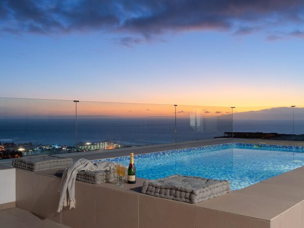 From the large terrace you can contemplate the wonderful sunsets and the panoramic views of the island of La Gomera. In the outdoor area it has a private heated pool, an outdoor shower, a table for your meals or dinners in company, a modern barbecue, ping pong table and a well-kept garden with comfortable hammocks.