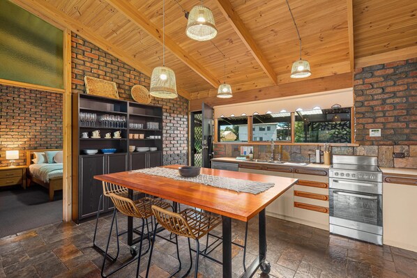 Perched on the raised dining table is just the place to fuel up with good brekkie before heading out for a day of adventuring under the sun.