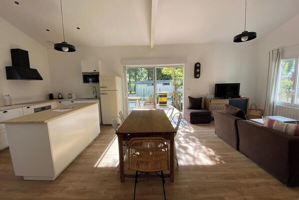 une cuisine ouverte sur la salle à manger