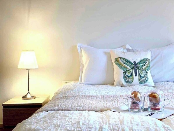 A very spacious bedroom equipped with top-quality bedding to ensure a peaceful night's sleep