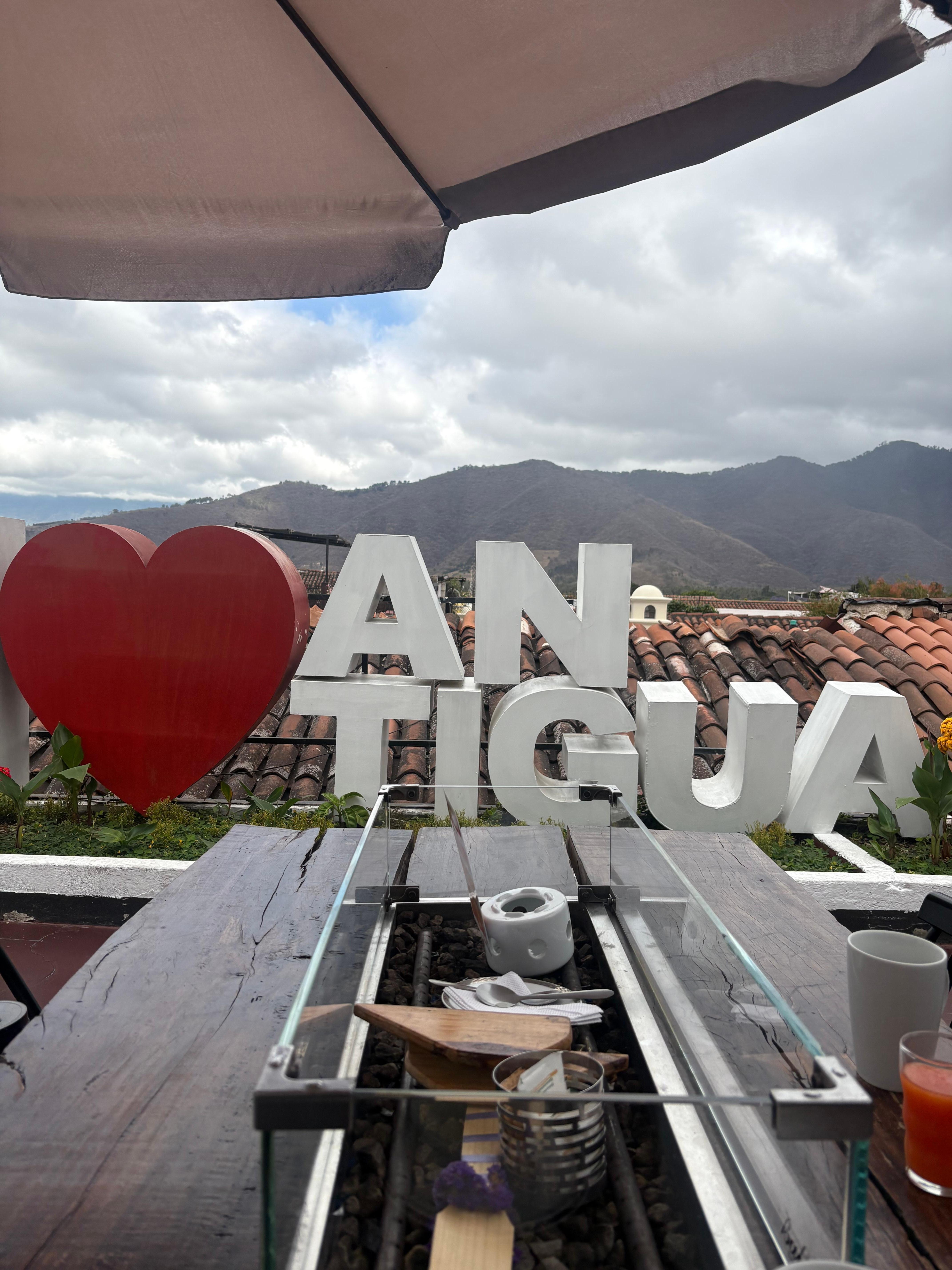 nice rooftop restaurant with views of the volcano