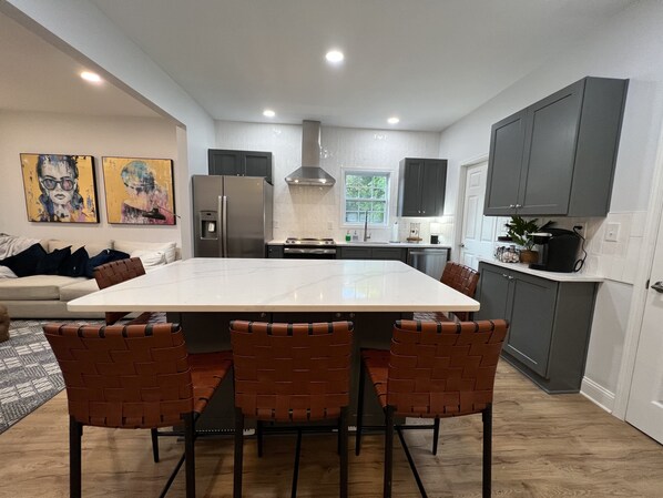 The house met our expectations for our first trip to Atlanta. We were not familiar with the Atlanta area. We wanted a place near the Georgia Aquarium. The unit was very close. It is very close to MercedesBenz Stadium. The beds were comfortable and living space was great. Kitchen was stocked well. We had a hard time falling asleep on Sunday because there was a lot of noise on the streets, but the other two night were great. It was nice that the three teens had their own beds and plenty of bathrooms. I would not have stayed here with younger children. Area is sketchy. Security system in unit was easy to use. Owner has cameras installed on the outside of house. I would recommend installing hooks for towels in the bathroom. Light on stairwell was burned out. We were out see sights in the city on our last day and for some reason the keypad didn’t work correctly. I called the owner. He called us right back and we were able access the house with no problems. When we checked out the house locked with no problems.