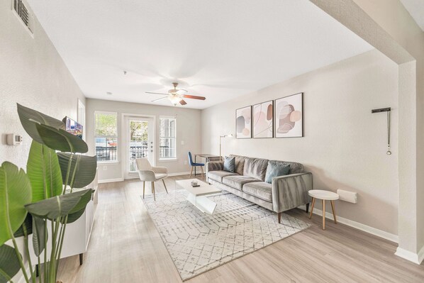 Welcome to your new home in Riverside - a fast-growing and increasingly trendy community right next to Downtown Austin. Our 1,005 sqft 2-bedroom apartment comes standard with a fully-stocked kitchen, well-appointed bedrooms, washer & dryer, community gym, free parking, dog-friendly (pet fee applies), and fast internet to accommodate your stay.