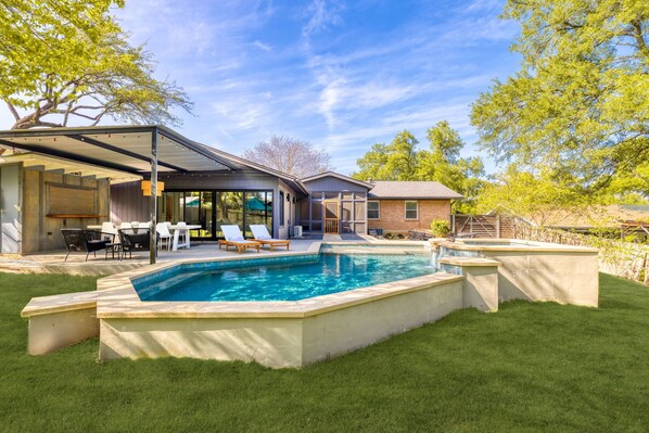Spacious Austin 4BR home with Pool, hot tub, outdoor dinning, minutes to Zilker