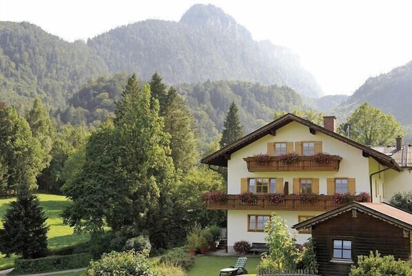 Ankommen-Wohlfühlen-Erholen Urlaub in der Oase der Ruhe, abseits des großen Verkehrs, umgeben von Wiesen, Wäldern und herrlichem Bergpanorama in traumhafter sonniger Höhenlage und dennoch sind Sie in fünf Autominuten im Zentrum. Fünf Autominuten von der Stadtmitte Bad Reichenhall entfernt liegt im Ortsteil Karlstein unser Landhaus - in 650m Höhe - 100m höher als Bad Reichenhall - in sonniger, ruhiger Lage , abseits des großen Verkehrs, inmitten herrlicher Bergwälder mit Panoramablick auf die Reichenhaller Bergkulisse, und weitem freien Blick ins Tal bis Salzburg. Unser gepflegtes familiär geführtes Haus ist im Landhausstiel gebaut und eingerichtet, und mit wunderbaren Blumenschmuck umrandet. Die persönliche Atmosphäre und die Tipps für schöne Ausflugsziele, Wanderungen oder Bergtouren werden von unseren Gästen gerne angenommen. Vergessen Sie Stress und Alltagshetze bei ausgedehnten Sparziergängen und Wanderungen (ab Haus möglich), bei heißen Tagen an unserem Badesee, den Thumsee (10 Min. Gehzeit entfernt), bei Erkundung der beliebten Ausflugsziele Salzburg und Berchtesgaden [ 20 km] oder Sie entspannen einfach in der Rupertus Therme [3 km] und lassen sich im Beauty und Wellness Bereich verwöhnen. Nach den Ausflügen lassen Sie den Tag bei einem Gläschen Wein oder einem kühlen Bier auf dem Balkon ausklingen und genießen einfach die Stille der lauen Sommernächte. In unserem Landhaus bieten wir unseren Gästen zwei unterschiedlich große Ferienwohnungen an. Alle mit Balkon und herrlichen weiten freien Blick ins Tal und auf die Berge. Wir würden uns freuen, Sie als unsere Hausgäste begrüßen zu dürfen.