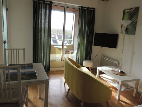 Cet appartement comprend une chambre, une télévision à écran plat, un lave-linge et une salle de bains pourvue d'une baignoire. Sa cuisine est équipée d'un micro-ondes et d'un réfrigérateur. Les serviettes et le linge de lit sont fournis. Le lit est fait par nos soins. Une pièce privative pour vélo est disponible gracieusement. Un balcon aménager avec deux loveuses et une petite table. Un tancarville est disponible. Un store roulant ainsi que des doubles rideaux.