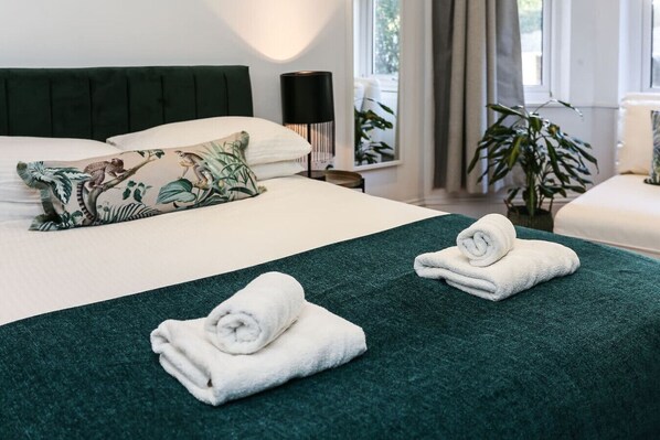 Les chambres de cet appartement incluent un sèche-cheveux et un fer / une planche à repasser. L'ameublement des chambres inclut des bureaux et des tables à manger. Les chambres ont une cuisine avec un micro-ondes, une batterie de cuisine, de la vaisselle et des ustensiles et une cafetière ou une bouilloire.