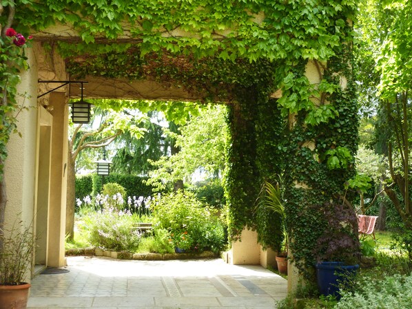 L’appartement est situé au rez-de-chaussée d’un mas restauré avec goût et possédant un terrain de 1500 m2, clos et arboré.