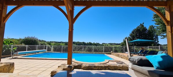 Accès piscine 5x10m, avec son pool house partagés avec les propriétaires.