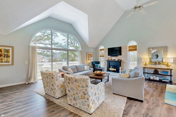 Enjoy your morning coffee from the screened-in porch, soaking in views of the backyard pond (perfect for fishing) and the 13th tee at Salt Pond golf course. After a day at the beach, enjoy the convenience of an entry foot shower and two private outdoor showers, complete with under-deck seating and pond views. Your party will love the large side yard for playing lawn games or watching the sunset while you prepare a dinner on the new Weber grill on the deck.