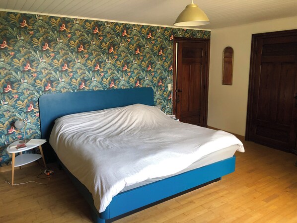 Au premier, une grande chambre, avec lit matrimonial (180cm), et placards. Une pièce bureau, avec grande télévision, et canapé lit 1 personne.