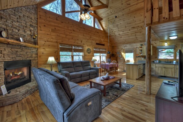 The cabin is located less than 3 miles from Downtown Blue Ridge, for shopping and dining. If you are looking for something with paved roads, easy access, then this is it! No Agenda boasts 2 beautiful queen bedrooms, 2 sets of twin beds and a queen sleeper sofa in the game room. The master suite offers an oversized jacuzzi tub. The outdoor entertainment areas are endless with two firepit areas and plenty of covered deck space to relax and unwind. New hot tub to soak off the days adventure of mountain biking or hiking. Come see what the fuss is all about at No Agenda.