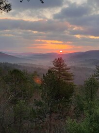 Wow is all we can say about this fantastic cabin. The views are far bwtter than can be captured by the pictures and the cabin itself ia huge, very nice yet cozy, and contains evwrything needed for a a week long vacation. When we arrived it was very clean and check in/ check out instructions were clear and easy. Just my husband, toddler, and I went, but enjoyed the huge space and wished our families could have joined us siince there is so much room and the bottom floor ia a kids dream with huge bunk beds and a game room. A bonus was the gas stove, my husband enjoyed using it everyday, and the jet spa tub. The firepit on the porch was another favorite feature and we spent a lot of time by it, especially on a rainy day when we bundled up by it and roasted marshmallows. The beds and pillows were very comfortable, no complaints there either! The only heads up we would give is the drive way up to the cabin is very vwry steep and winding. For us Florida folk it was a little nerve-wracking going up and down it but i guess there is a price to be paid for a million dollar view! Just keep that in mind if you don't like narrow, winding mountain roads, and also, if you have small kids, there is a small fenced in yard downstairs but it is very sloped so there really isnt much of a yard for kids to run in as the cabin is perched on a mountain with steep slopes to all sides. 10/10 would recommend this cabin though!