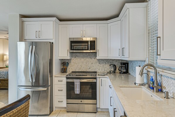 Elke kamer met airconditioning in Stroll to Beach & Eats: Bonita Springs Studio is voorzien van een strijkplank/strijkijzer en een plafondventilator. Elke kamer heeft een balkon. Alle kamers in dit appartement met 3 sterren hebben keukens met een kookplaat, een microgolfoven, kookgerei, borden en bestek en een vaatwasser. Elke badkamer is voorzien van een douche.