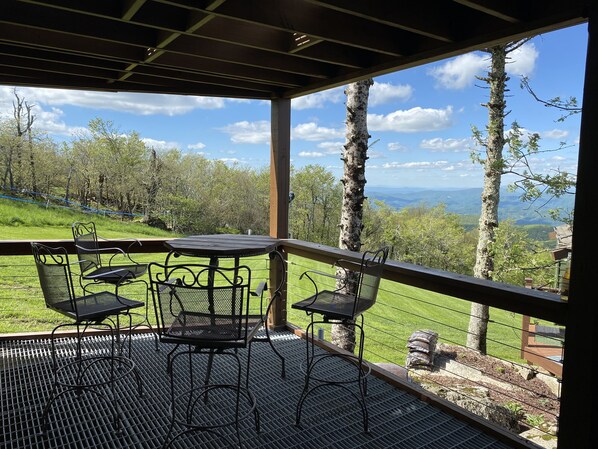 Profitez d'une cabine très confortable située à plus d'un mile de haut. Buvez votre café préféré tout en profitant d'un lever de soleil incroyable et d'une vue imprenable sur la montagne Grand-père. Avec des fenêtres enveloppantes, vous pouvez profiter de vues spectaculaires sur les montagnes à longue distance dans le confort d'une table à manger enveloppante.