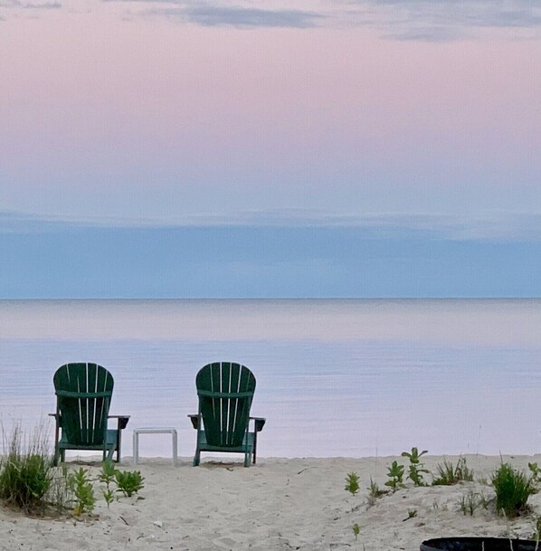 Les soirées à Snow Beach sont magiques: regardez les cerfs se promener sur la plage au crépuscule; après le dîner, allumez un feu de camp et admirez le ciel nocturne; ou s'endormir à l'appel apaisant de Poe Reef Light, qui peut être vu depuis le chalet.
