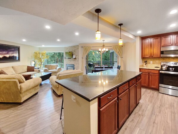 - Cuisine / salle à manger: granit, appareils en acier inoxydable, Keurig, DR a des sièges pour 6 + 3 au bar