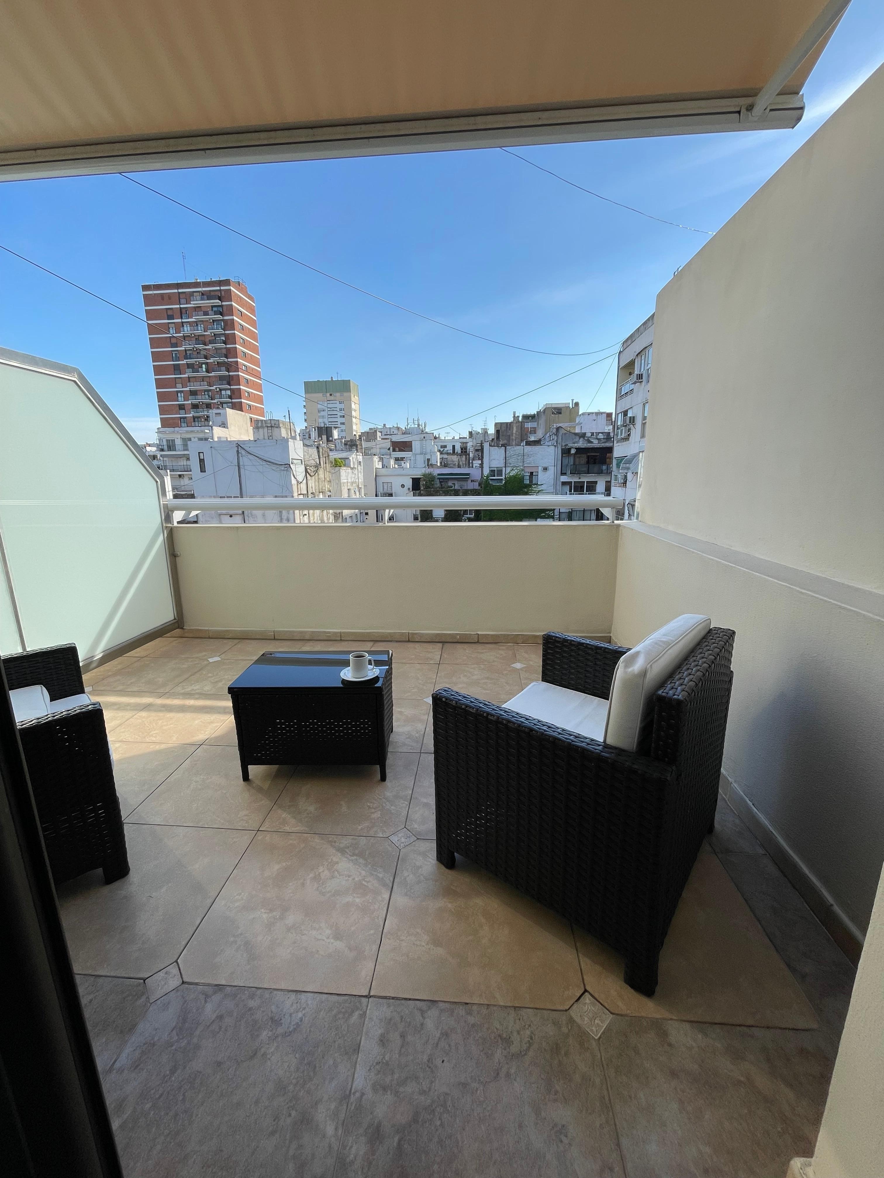 Een gemeubileerd balkon