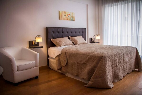 Wifi * Smart LCD TV * Air conditioning hot / cold * Central heating * King size bed * Bathtub * Hair dryer * Sheets, towels and hand towels * Iron and board * Refrigerator with freezer * Microwave * Gas oven * Coffee maker * Juicer * Blender * Toaster * Kitchen utensils * Pots and pans * Large balcony with open view