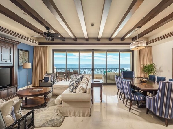 Cabo has plenty to offer for couples and families from snorkeling, hiking, marlin fishing, swimming with dolphins, camel rides, horseback riding excursions, zip lining, fine dining, local shopping, high end shopping and plenty more!! The marina with shops, restaurants, excursion offers and the local square is just a 7 minute walk away! We've been coming here 1-3 weeks a year for the past 13 years and we love it!! Grand Solmar Land's End is a full service luxury resort and we know you'll love it as much as we do!!