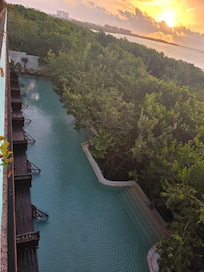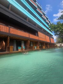 The hotel is situated only 15 minutes from the airport and just off of the hotel zone. It has an awesome private beach with lots of hangouts, bed, tents etc. Every inch of it is worth a photo. The hotel has 3 pools: on the beach, on the roof and next to the lobby (with swim ups). Everything is well maintained.