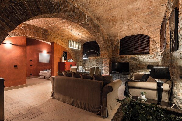 Ce charmant et unique loft en pierre est situé au rez-de-chaussée de la Villa Guinigi Dimora D'Epoca, avec accès indépendant. C'est un charmant appartement caractérisé par le style chaleureux des anciennes voûtes en briques originales, réalisées dans les anciennes caves de la Villa. Composé d'une grande chambre double, d'un grand salon avec kitchenette et salle de bains pouvant accueillir jusqu'à 4 personnes, il est idéal pour les jeunes couples et pour une lune de miel romantique des mariés.