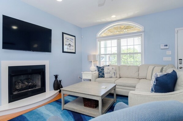 As you enter the home you are welcomed by an open living room that flows seamlessly to the nicely appointed kitchen. Accented by beautiful wood floors and soothing coastal shades of blue, this welcoming living space is truly the heart of the home. Whether you are preparing a meal, dining, or relaxing on the large sectional sofa - “Retreat Yo’ Self” makes a wonderful gathering space for families to share. Take advantage of the private elevator that makes unloading groceries and luggage a breeze!