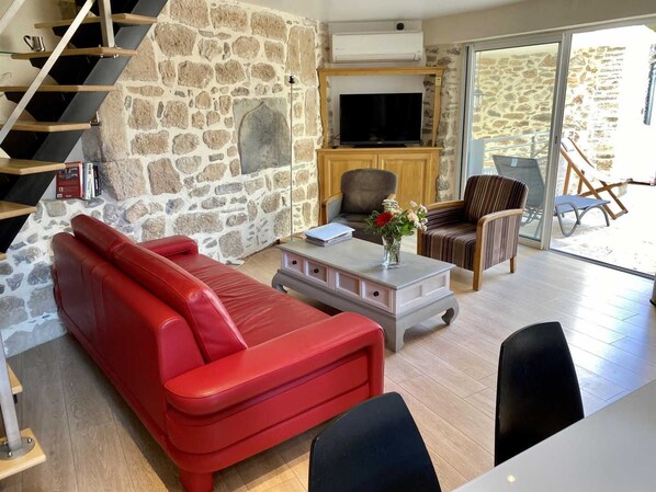 Situé à deux pas de l’Abbaye et des célèbres carrières de marbre rose, le gîte vous offre un point de départ idéal pour découvrir la beauté du Minervois. Les sentiers de balade vous mèneront à travers vignes et garrigue, entre patrimoine et nature. Le village propose de nombreux restaurants, des commerces de proximité, et des dégustations des vins du cru sur simple demande. Un séjour placé sous le signe de la découverte et du plaisir des sens ! Aménagé sur 3 niveaux, et rénové avec charme dans un esprit contemporain discret tout en ayant gardé l'authenticité de ses vieilles pierres, il offre tout le confort pour un séjour en famille ou entre amis, il est climatisé, et se présente ainsi : Au rez-de-chaussée : _Une entrée avec un authentique puits, _Un W.C indépendant, _Une chambre avec un lit en 160 un coin bureau, et lavabo, cette pièce donne un accès direct sur la première terrasse, et donne également sur l'espace bien-être doté d'un jacuzzi 5 personnes, avec également douche italienne et un lave-linge. Au premier étage : _Un séjour avec cuisine ouverte, espace salon, _Une terrasse sans vis-à-vis, avec mobilier de jardin et plancha gaz, Au deuxième étage : _Une suite avec un lit en 140, une douche et un lavabo, _Un W.C. indépendant avec lave-mains, _Une chambre avec deux lits en 90, vue sur les toits du village, Cour fermée à l'entrée du gite, permettant de garer jusqu’à 3 motos. Accès possible en voiture (rue étroite) Parking public à 150 m du gîte Gite de caractère dans le centre historique du village de Caunes Minervois. Entre pierres et modernité, au cœur du Minervois
