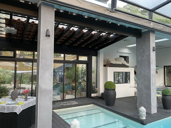 Oui, cet hébergement vous propose une piscine couverte. Parmi les différents bassins de l'hébergement, on trouve une piscine chauffée.