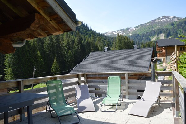 Le chalet bénéficie aussi d'une terrasse, de balcons et d'un jardin privatif exposés Sud/Ouest, avec mobilier de jardin et barbecue. Le véritable "plus" de l'espace extérieur est son jacuzzi pour finir en beauté la journée de ski, au milieu d'un paysage enneigé.