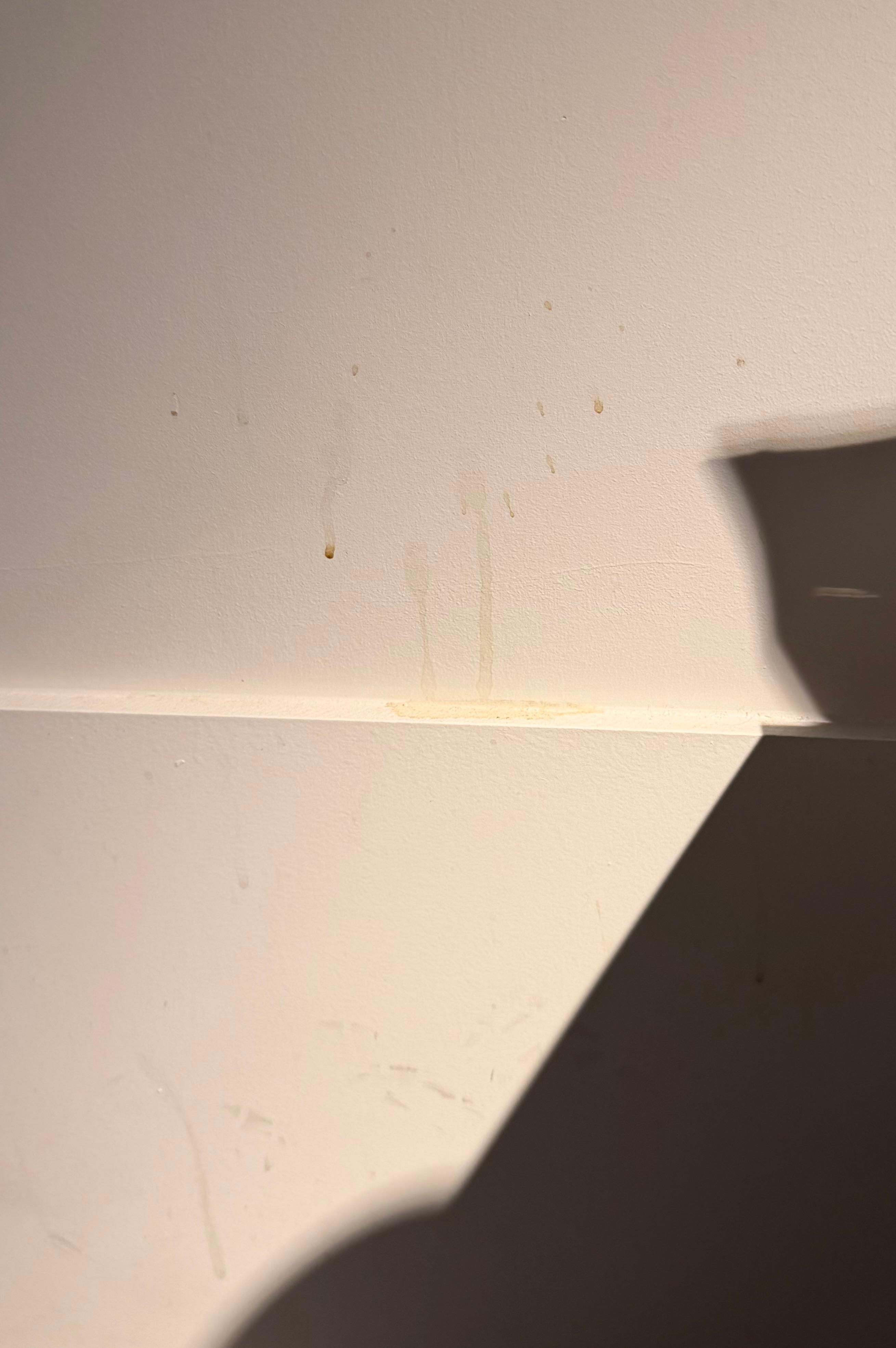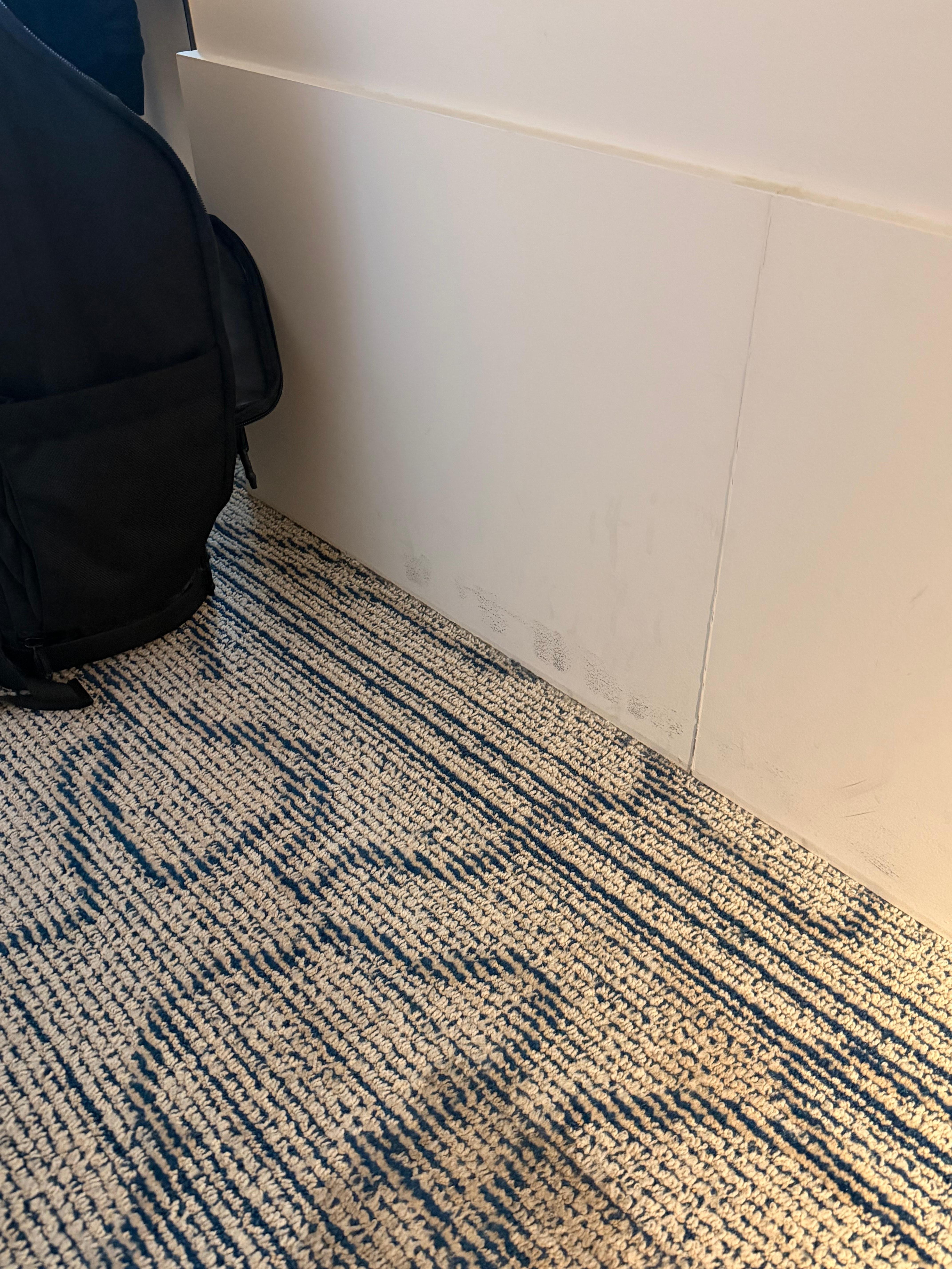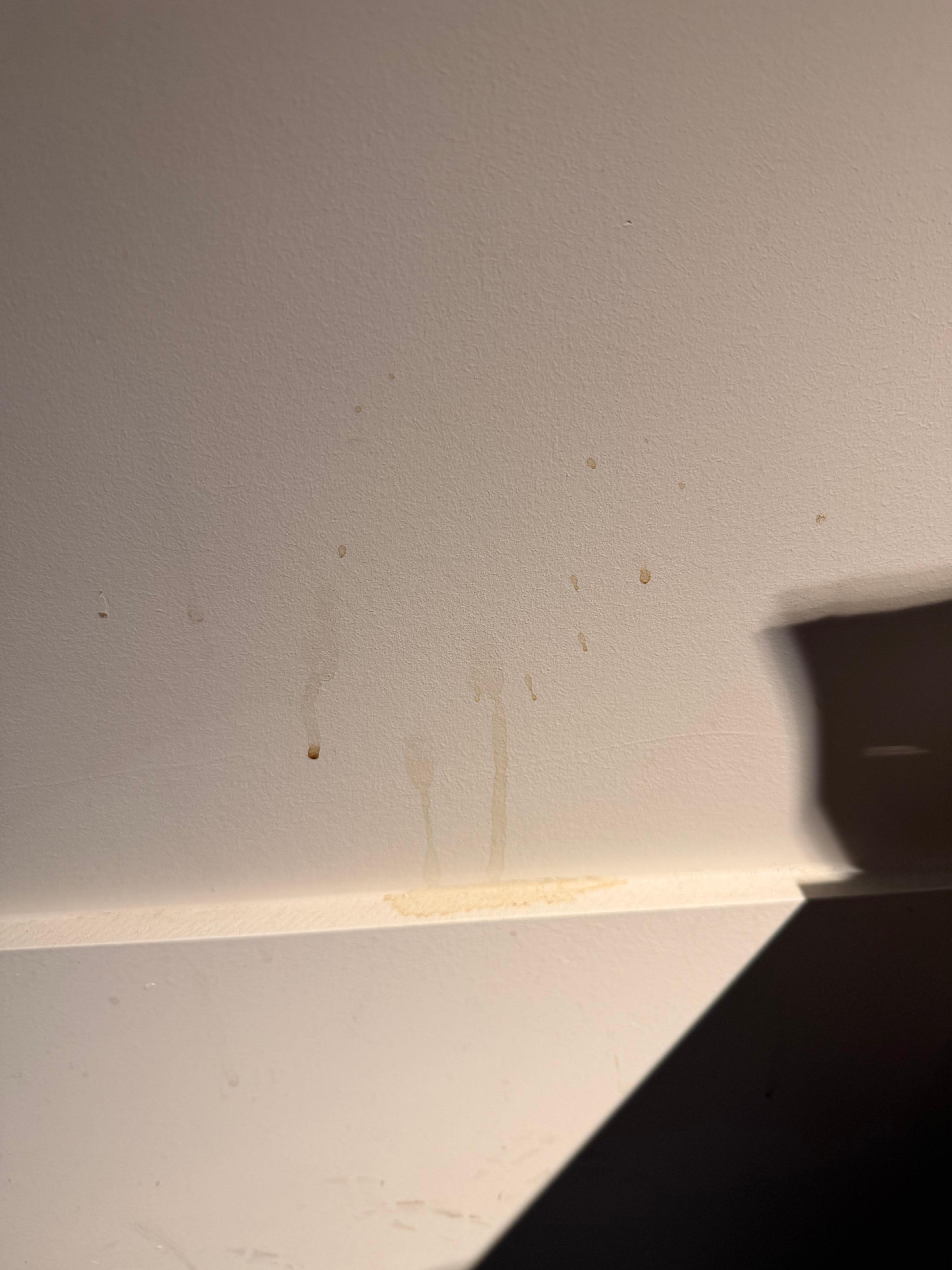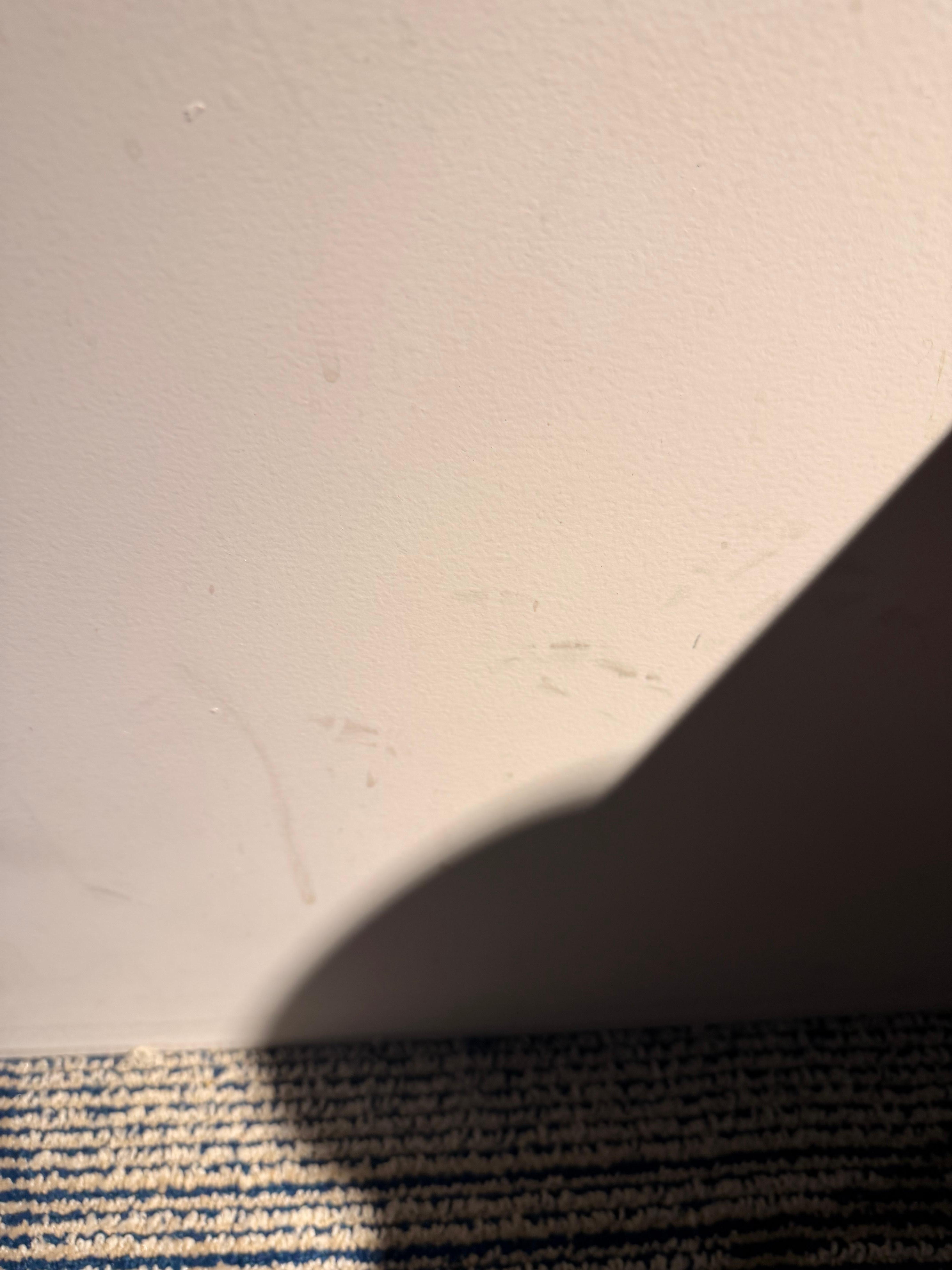 The room was dirty. It had coffee stains and splashes up the walls scuff marks on the walls. Pubic hair in the toilet area. The room was very basic and we joked about it being like a prison cell