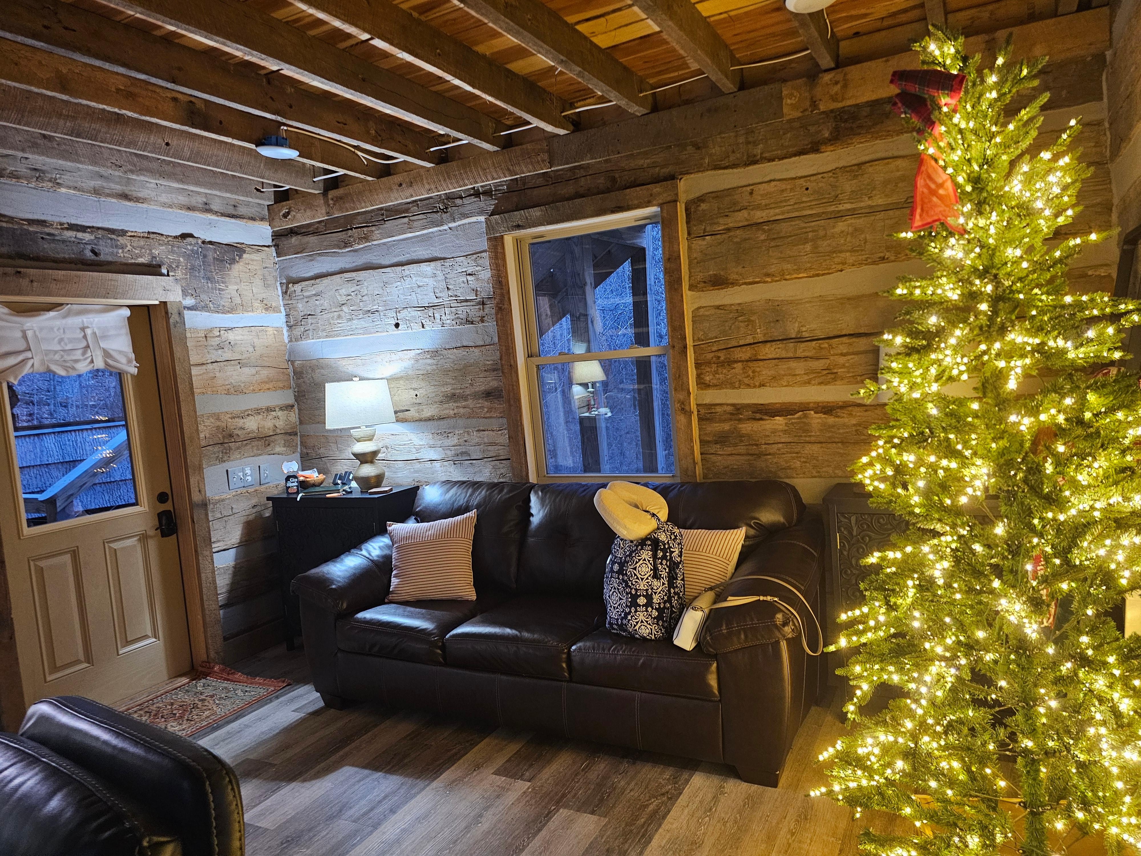Cozy Love Shack: Rustic Log Cabin, Outdoor Living Room/Treehouse, & Fireplaces